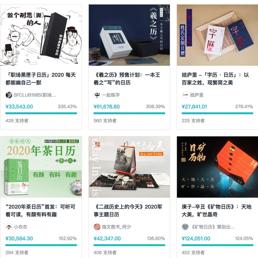 为了尽可能延长宣传期,日历开发团队一般会抢先预售。此外,众筹也是自媒体、设计工作室等前置造势、评估成本的重要方式。几大文化创意众筹社区,都有几十个日历预售项目成功落地。