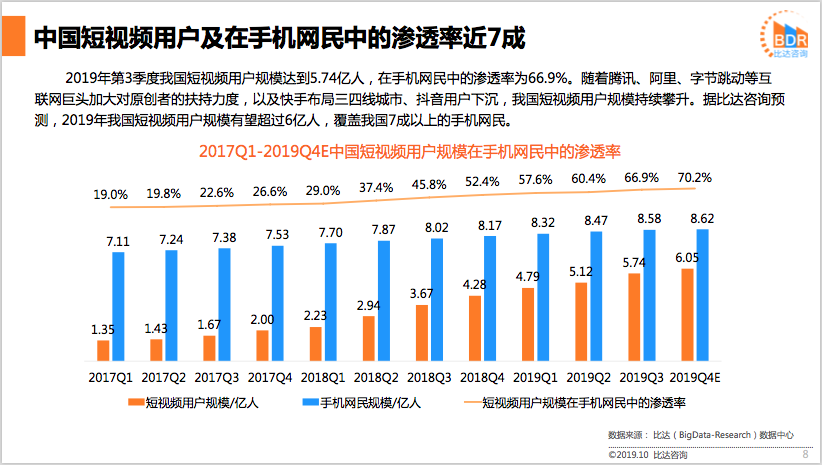 请输入图说数据来源:《2019年第3季度中国短视频市场研究报告》