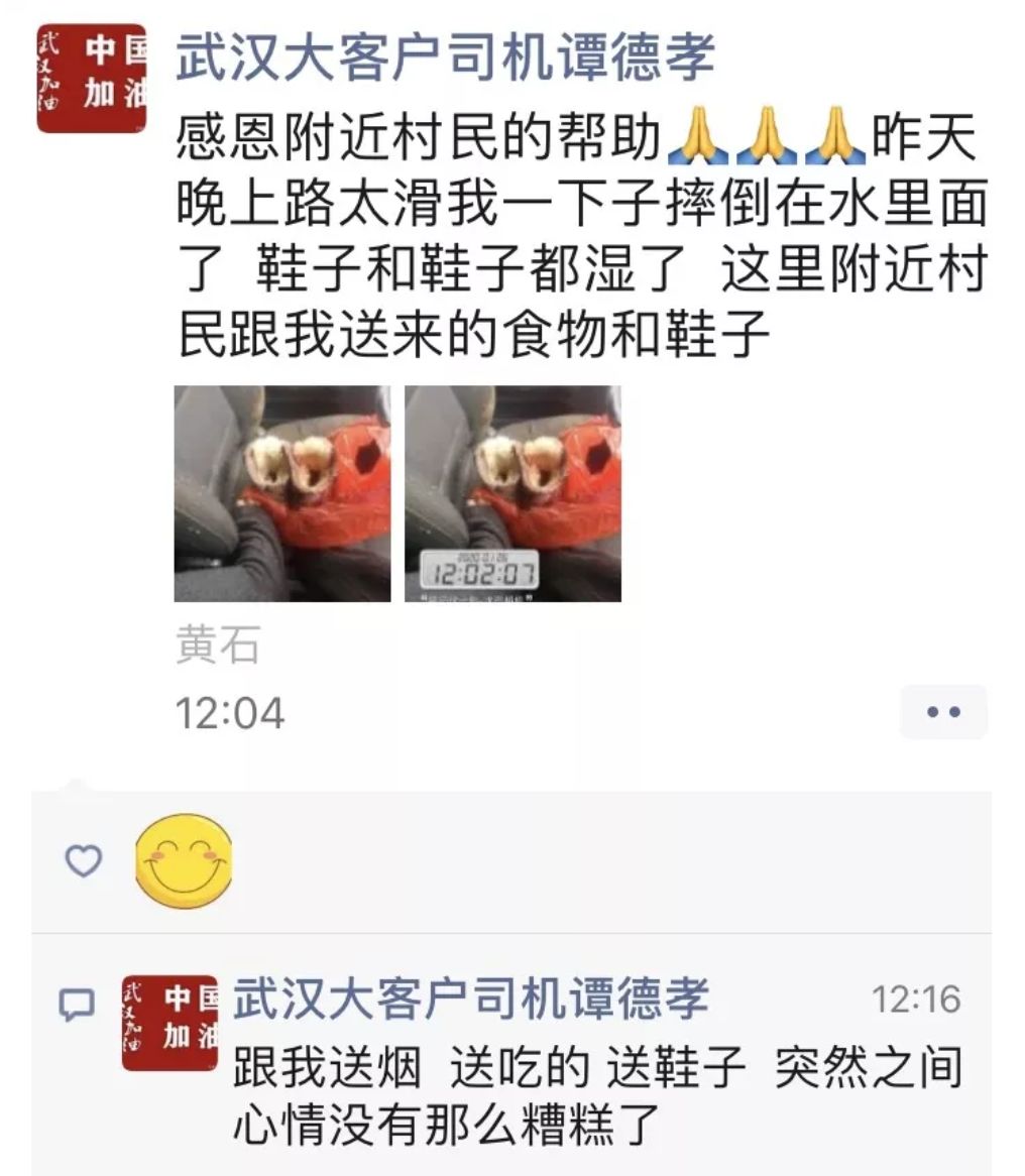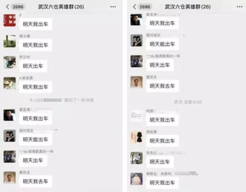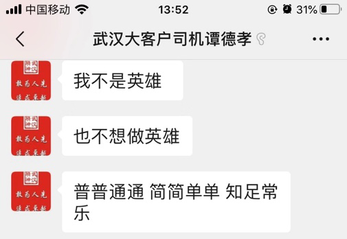 他们很多都不善言辞,在武汉六仓的群里,简简单单几个字表达了态度——“明天我能出车”。