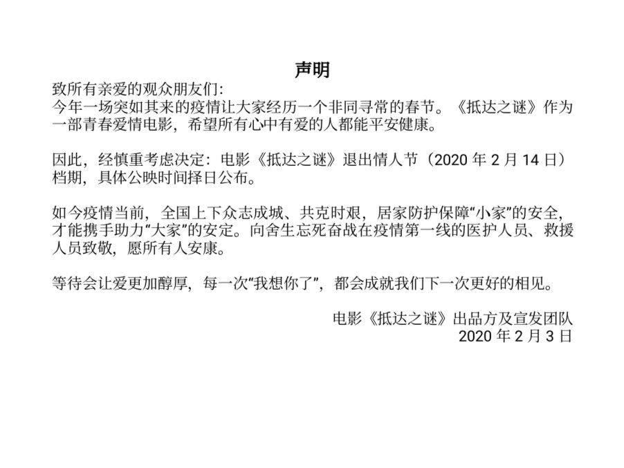 只是现在,一切预测票房都化为了“0”。继春节档七部影片集体撤档后,原定于2月7日上映的吴磊、陈乔恩的《源·彩虹》登陆移动院线,《贝肯熊2:金牌特工》宣布撤档,《抵达之谜》宣布退出原定档期,据悉情人节档期电影已经全部撤档。当前显示在豆瓣“即将上映”页面的电影均为2月21日之后的,而这些影片也面临着不确定性。
