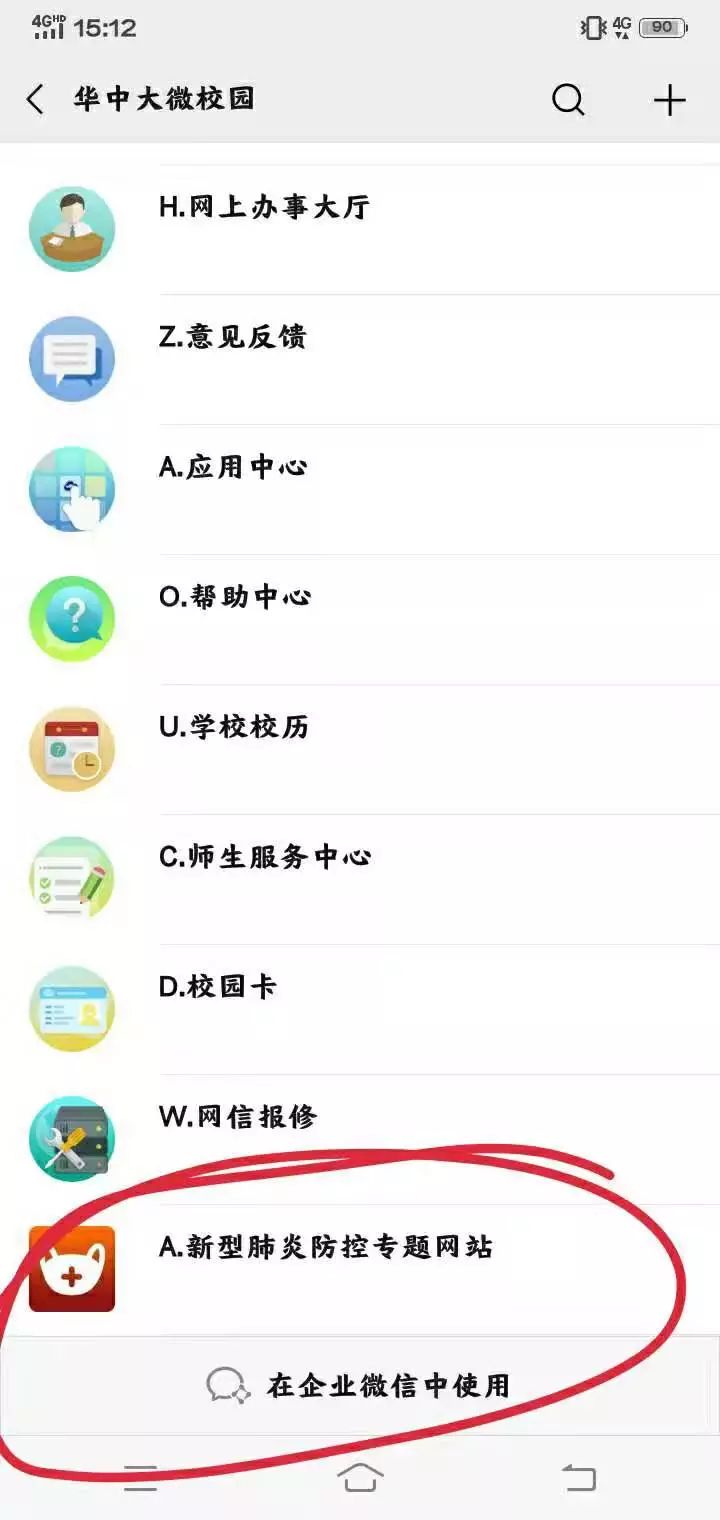 与此同时,赵琳晶的学校也通过企业微信端“华中大微校园”及时上线了“新型肺炎防控专题网站”,为赵琳晶等学生们及时传达目前学校的公告、组织填报身体健康状况以及辟谣相关等信息。