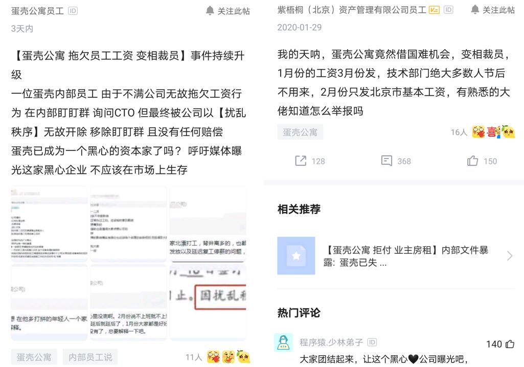 裁员事件曝光后,蛋壳公寓很快被爆出强制要求房东免除1-3个月的租金,甚至直接拒付房租,以应对近期疫情带来的损失,在房东群体中引起大量不满。房东群体在蛋壳这样强势的“租客”面前,也变成了弱势群体。