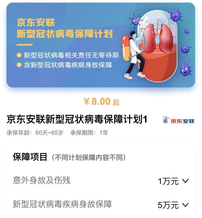比如,2月3日,京东安联上线了“新型冠状病毒保障计划”。