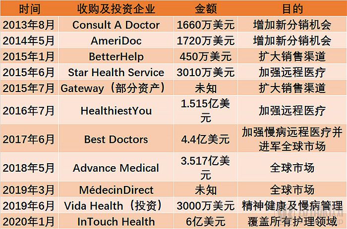 2020年1月,Teladoc Health宣布收购InTouch Health。这次收购花费6亿美元,是该公司历史上金额最大的收购。