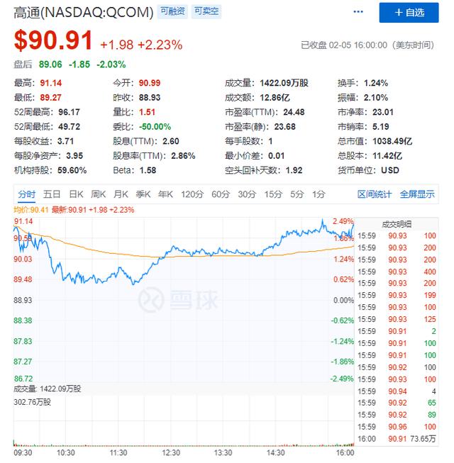 财报公布后,高通盘后一度涨超3%,但随后转跌,一度跌超4%,现报88.9美元。