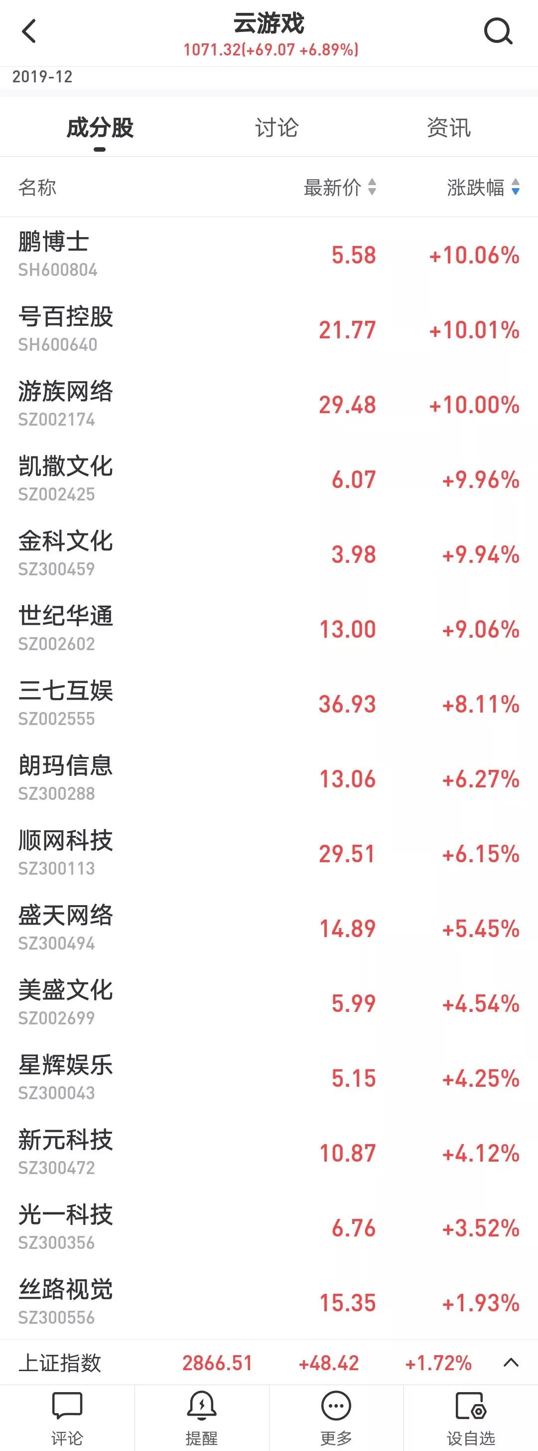 值得注意的是,2018年至今,天神娱乐的业绩频频爆雷,2018年亏损额甚至达到了80亿元,直到2019年第三季度,天神娱乐的净利润仍然处在亏损状态,前三季度累计亏损超4亿以上。而现在,棋牌游戏给了天神娱乐一个新的发展机会,截至目前,天神娱乐单日的股价已经开始回涨,净利增速更是达到了176.49%。