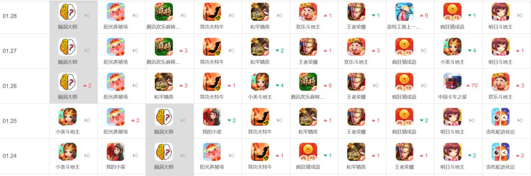 七麦数据显示,除夕当天(1月24日),App Store免费榜排名前五位的游戏,均在字节跳动系发行或买量。借助字节跳动的算法优势,几款游戏迅速触达核心消费群并完成转化,形成集中的消费增长。其中,《脑洞大师》更是连续11天霸占榜单首位。