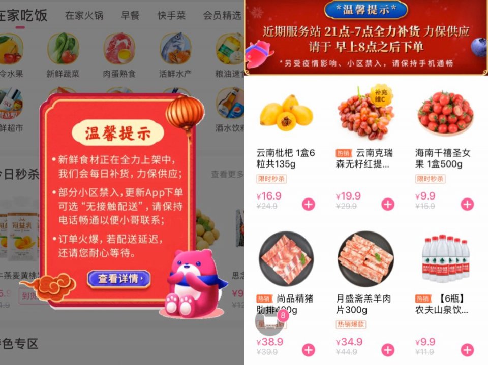 “超市菜场去晚了就没菜了,就算有菜也比较贵,关键现在的情况是不能也不敢出门。”正如李女士所言,公众的日常生活因疫情受到影响,基于对一日三餐的需求而集中到线上买菜,每日优鲜、盒马鲜生、叮咚买菜、苏宁菜场等各大生鲜电商平台订单量暴增。