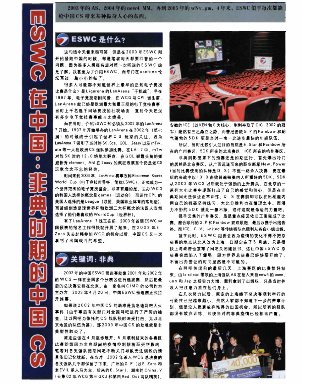 由于非典放假,ESWC的线上赛收获了很多玩家的关注,又因为AS战队以黑马之姿战胜了夺冠热门China.V,并展现出了不输国际强队的竞技水平,让CS成为了2003年电竞行业的流量担当。