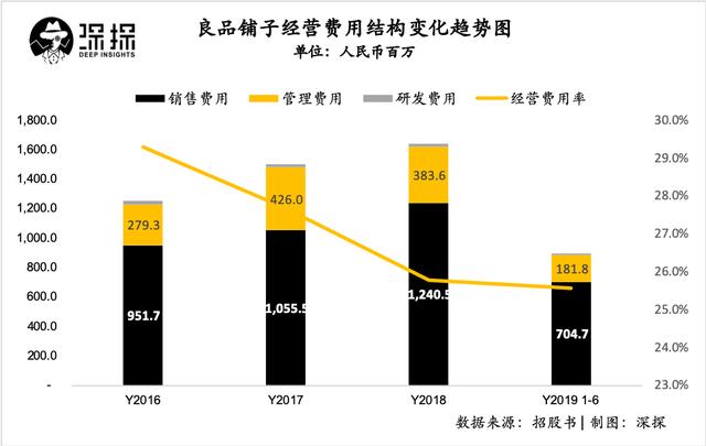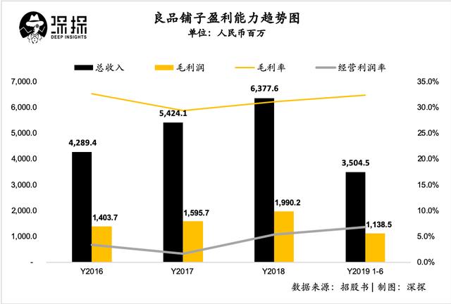但良品铺子在扣除了销售费用、管理费用和研发费用之后的经营利润率就下降到了不到10%的水平,2019年上半年相较前三年已经有了较好的增长,但也仅仅是提升到了6.9%。