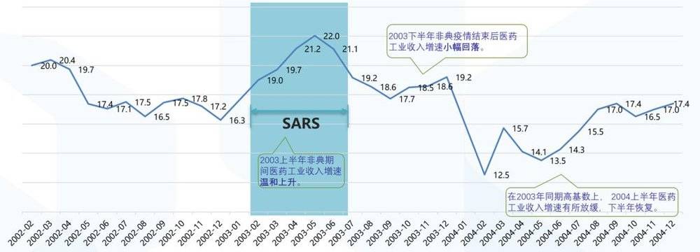 根据我们对SARS期间医药工业累计收入增速的复盘会很清楚地发现,疫情对医药工业仅带来了3个~6个月的阶段性增长波动。