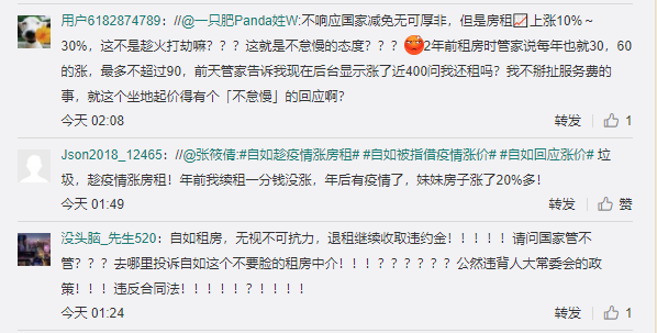 值得一提的是,熊林的微博关闭了评论功能。许多用户通过转发熊林微博的形式,进行了评论,谴责自如趁机涨价。