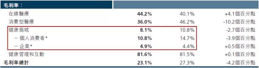 健康商城业务本身实际上是电商业务,电商业务毛利率相较于服务型业务毛利率较低。而自2018年开始,公司对于To B的电商业务大力扶植,但To B电商业务相较于To C的业务,毛利更低,因此导致公司整体毛利率被大幅拖累。