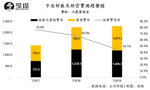 在收入大幅增长的情况下,公司19年经营费用总额与2018年基本持平,体现了公司经营效率的提升。公司2019年经营费用率仅为45.1%,远低于2017年及2018年的水平。