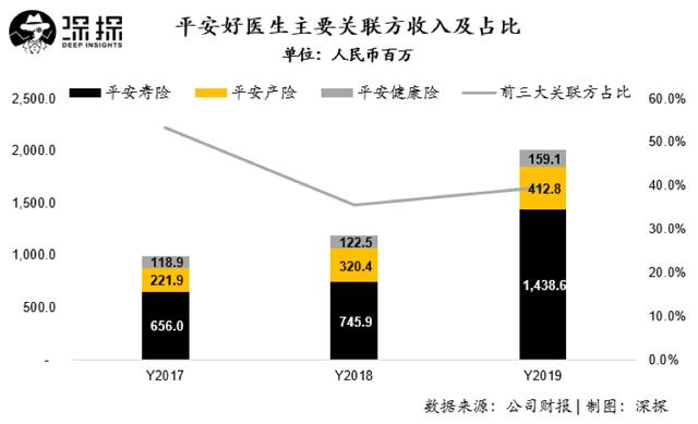 在收入来源上,平安好医生在2019年对于平安集团仍然具有较高的依赖程度。