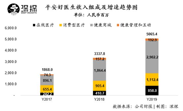 收入分类上,平安好医生收入依然是由四大核心板块组成,分别是以在线问诊为核心的在线医疗板块;以体检、医美、口腔等标准化健康服务为主的消费型医疗板块;以中西药品、营养保健、医疗器械及母婴产品销售为主的健康商城板块;以及为客户提供广告服务为主的健康管理和互动板块。
