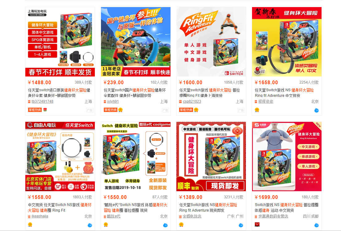 最明显的例子,就是曾经畅通无阻的网游均显示红色爆满、Steam上的N多款游戏创下在线人数历史新高,任天堂的《健身环大冒险》价格更是从最开始的6、700百元一路冲到1400+。其他聚会类游戏,例如《马里奥派对》的价格也都出现不同程度的上涨。