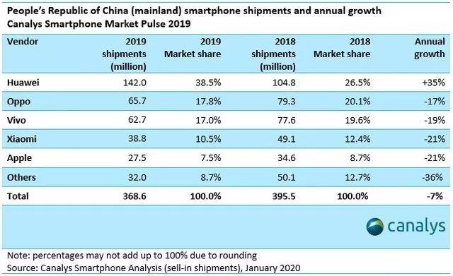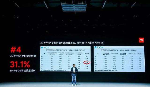 虽然在发布会中,雷军称,小米在2019年第四季度销量上涨了31.1%,但在2019年手机整体销量中却只有华为处于上涨态势,小米则出现了负增长。