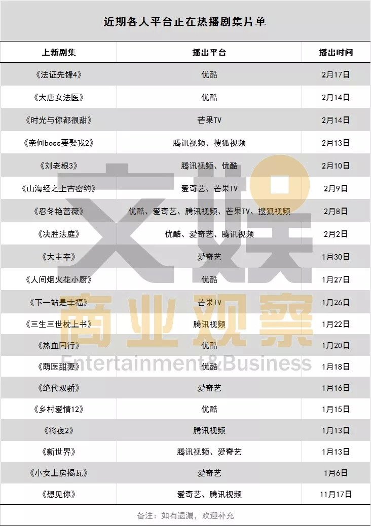 整体来看,受此次疫情影响,网剧上新力度在尽可能放大,同时,播出剧集覆盖更为全面的收视群体,既包括寒假档的主流学生观众,也包括一大批针对中老年群体的乡村题材剧集。在全面防控疫情的时代背景下,各大平台如果能够积极配合,为每一位观众都寻找到一部适合宅家的剧集,也不失为对于社会的贡献。