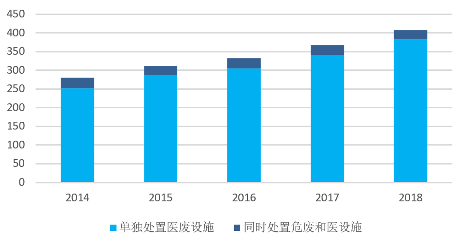 而在处置产能方面,截至2018年全国各省(区、市)共颁发407份危险废物经营许可证用于处置医疗废物,其中,383份为单独处置医疗废物设施,24份为同时处置危险废物和医疗废物设施。
