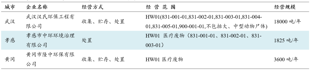 ▼武汉、黄冈、孝感的医疗废物处置机构情况