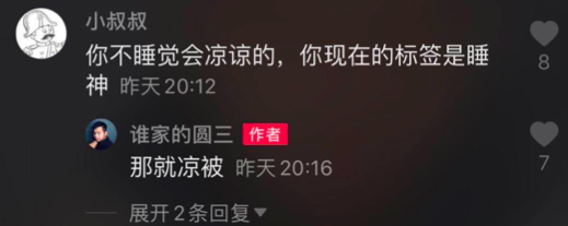 最近的视频中,他坦然接受网友给的标签,自称“睡神”,并打算将睡觉的元素融入以后的短视频脚本,只不过,不会再去直播睡觉了。