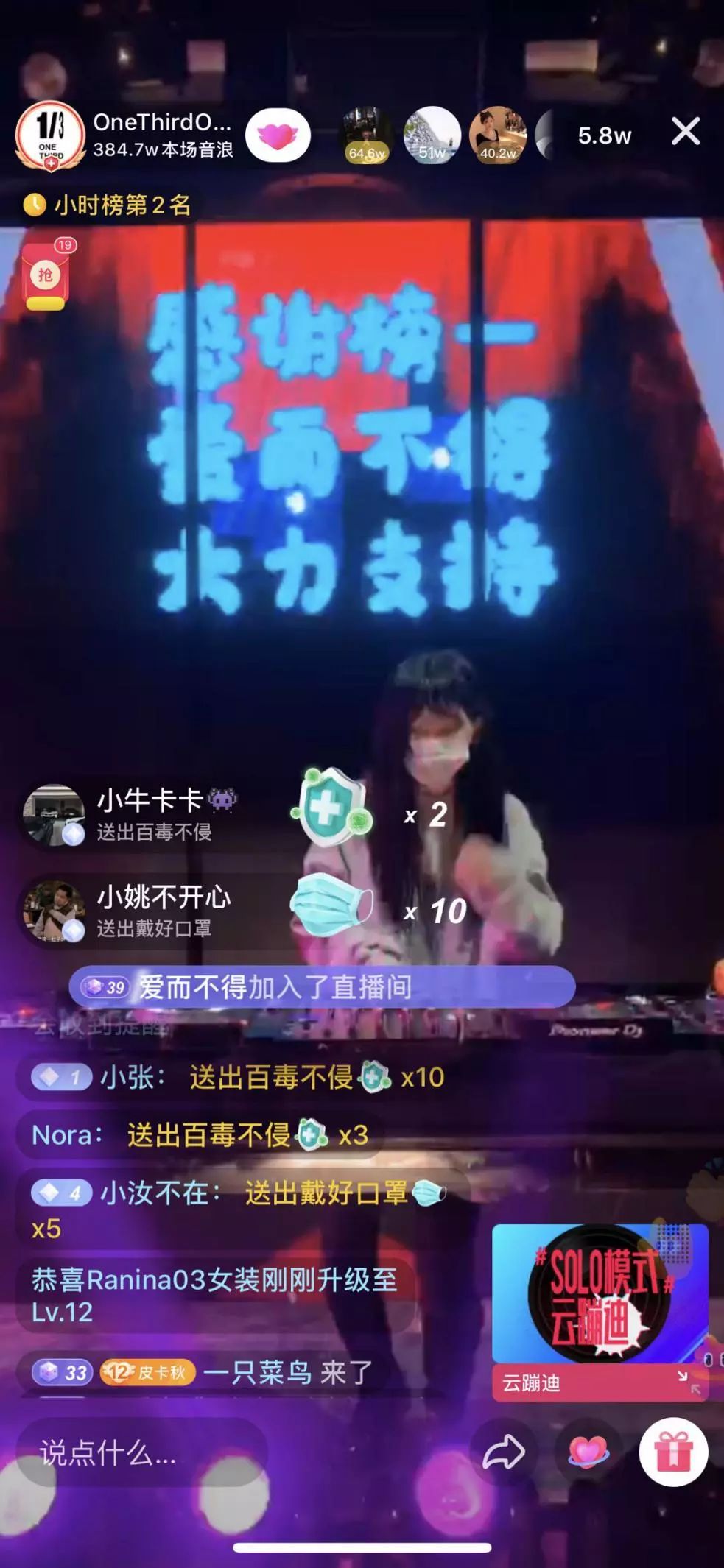 TAXX和ONETHIRD两大最强夜店的线上“battle”, 夜店常客和电音爱好者喜闻乐见。有人甚至在朋友圈揣测:一场打赏在70-100万,比线下盈利还要多。