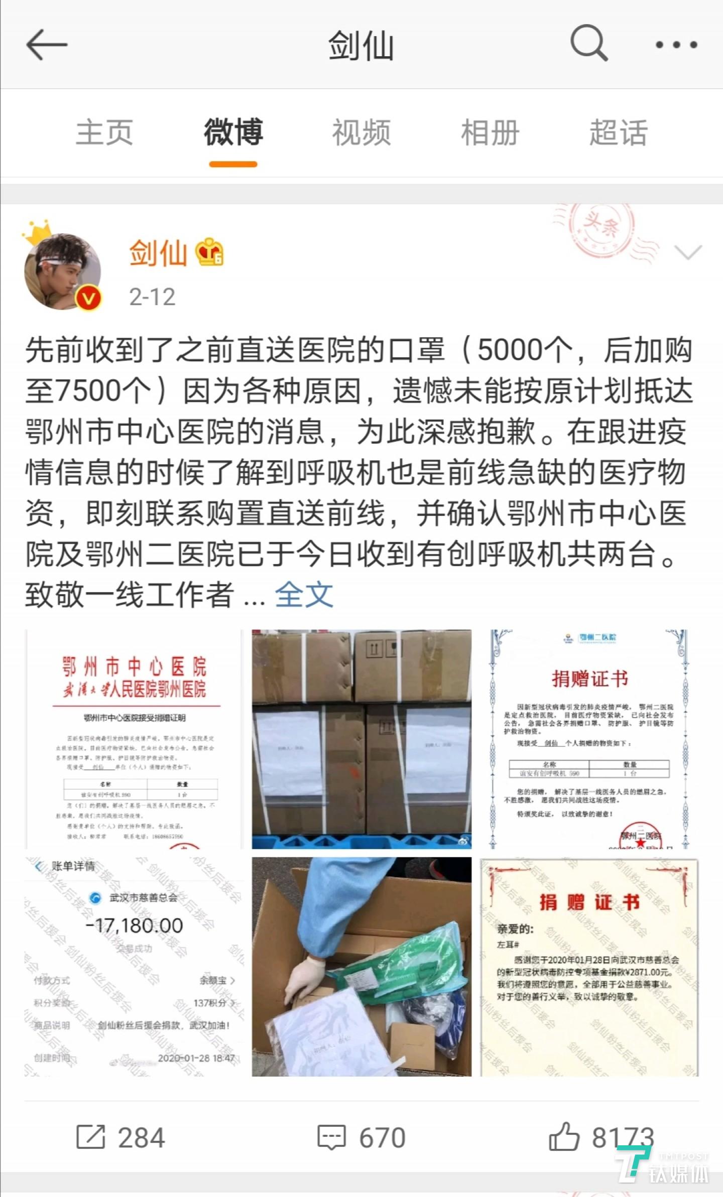 “我觉得年轻人对这件事情非常重视,我微博上也有看到朋友们和我的粉丝后援会积极捐款,大家都是力所能及地在贡献力量,我看到这些也很感动。”剑仙对钛媒体表示。