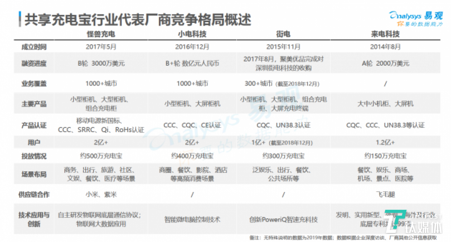 根据易观2019年12月底发布的数据显示,怪兽充电、小电科技的充电宝业务均已覆盖1000+座城市,投放量均达到百万级,由于其主要收入来源为线下租赁服务,其在本次疫情中所受的影响相比其他两家更大一些。