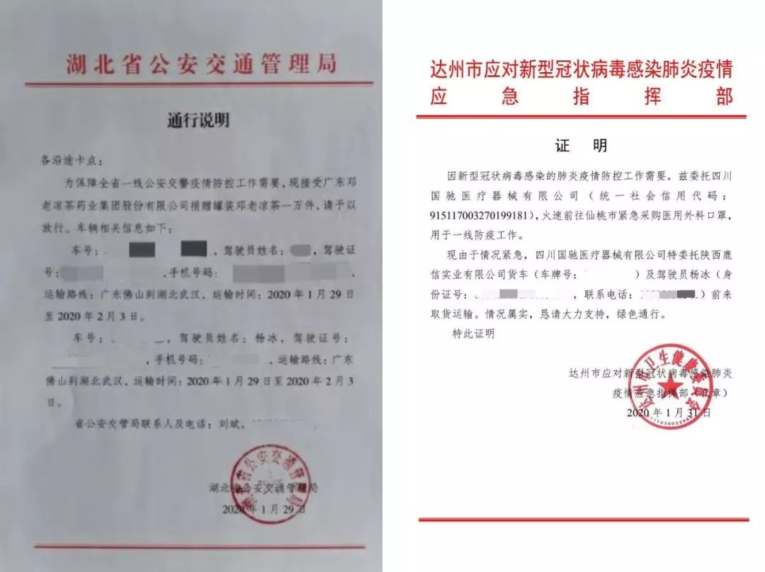他的车身上留了第一次去武汉时贴的大红横幅,“广东XX凉茶支援武汉”,车前面是“武汉加油”,后面是“中国加油”,这横幅引起了达州收费站的警觉。
