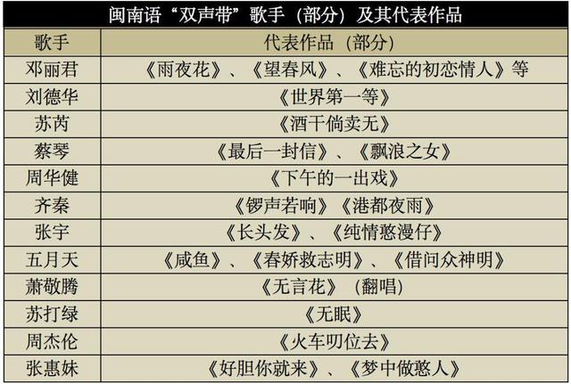 彼时,作为华语流行乐中的一股清流,闽南语歌曲开始受到众多主流歌手的青睐。很多知名度已经很高的歌手纷纷跨足闽南语领域,一批“双声带”歌手开始引领华语音乐的新潮流。比较有代表性的,包括苏芮、蔡琴、周华健、齐秦、张宇、江蕙等。