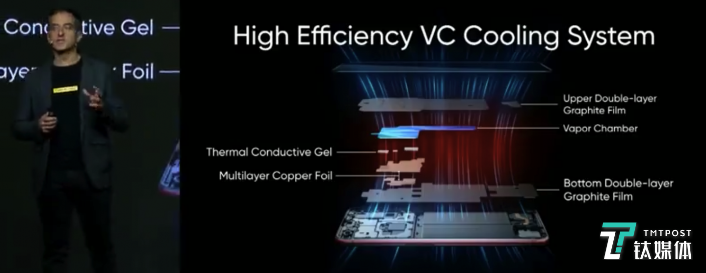 为了确保手机能够更好地满血运行,realme真我X50 Pro 5G配备五重立体冰封散热Pro技术,由VC液冷铜板、多层立体石墨散热片、散热硅脂等多重散热材料组成,其中VC液冷均热铜板面积高达1821mm,比传统热管散热面积更大,能够100%覆盖核心热源。