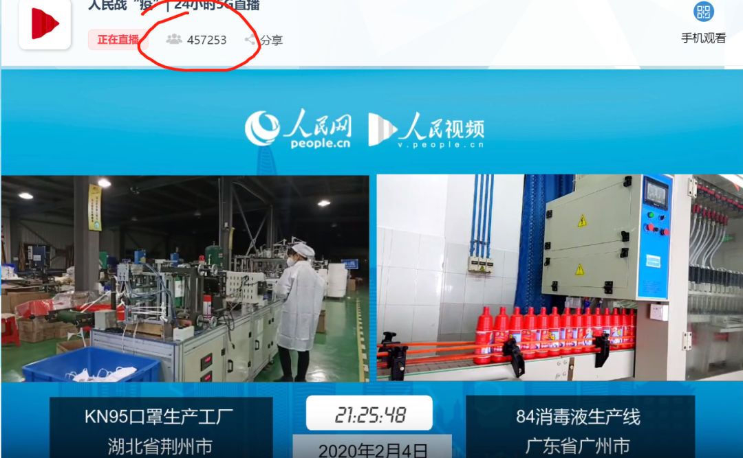 这是2月4日晚上,一群网友的对话。没有解说,没有打赏,只有固定镜头在立白84消毒液生产线上,网友们“加班加点”,监督即将被送到定点医院的威王大红瓶生产;也练眼力数每箱装多少瓶,并就到底是20瓶、21瓶还是24瓶,展开热烈讨论……