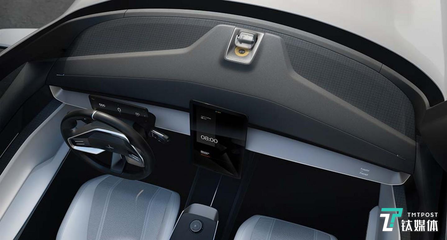 在传统后视镜的位置,极星Precept被摄像头组件所取代,可有效降低空气阻力。车内配备流媒体后视镜,可看到车尾广角镜头采集的高清后视影像。