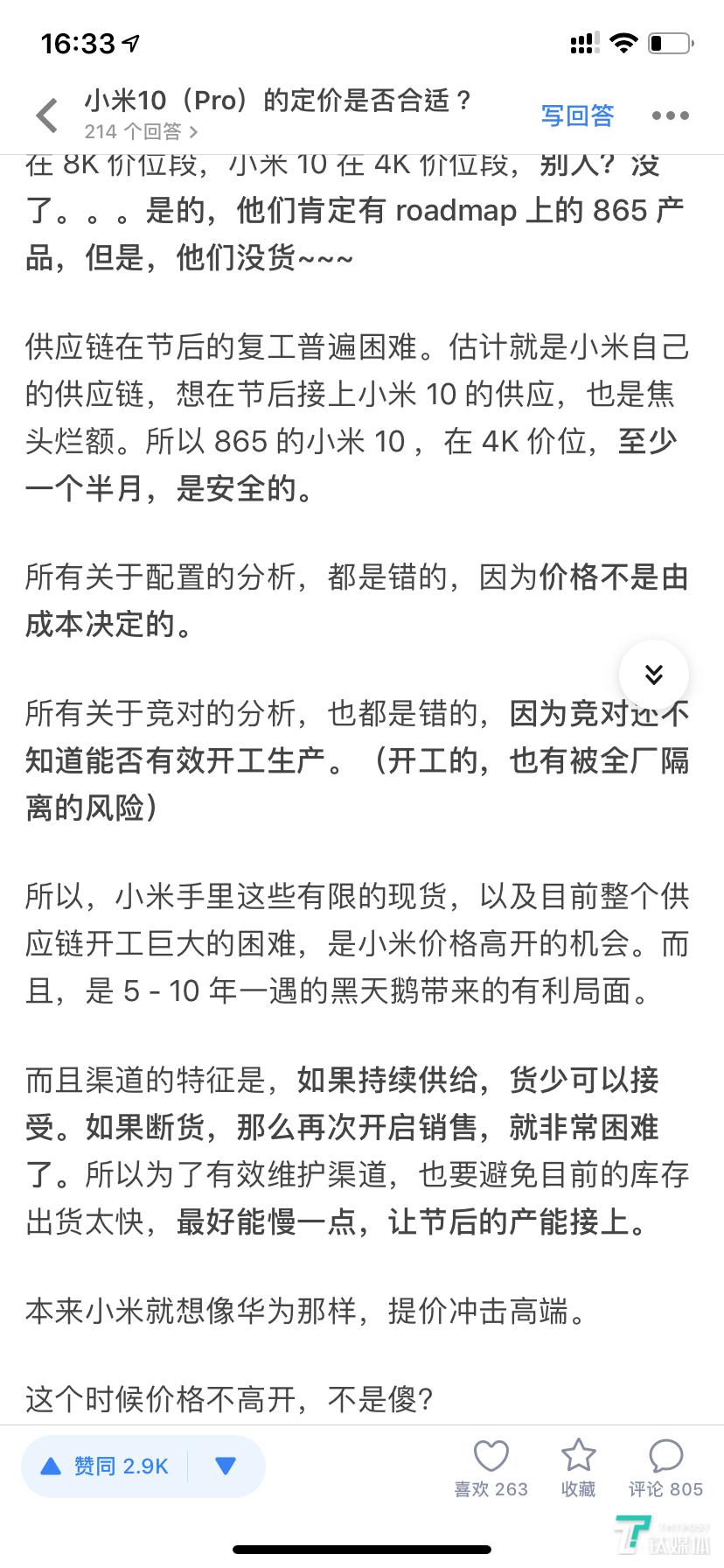 彼时,魅族前副总裁李楠就在知乎上发表了自己对小米10 Pro价格的看法。李楠认为,价格由供求关系决定。小米10有现货,从当前供应链的开工状况看,应该是年前已经量产,目的估计是为了和三星 S20抢865首发。虽然三星还是领先了一步,但小米10是目前市场上唯一的国产品牌865现货机型。