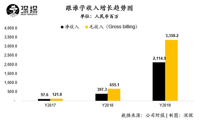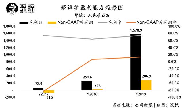 一周前,「资本深探」曾对跟谁学的最新财报进行了简要解读,其财报显示,跟谁学在2019年四季度及全年分别取得净收入9.35亿及21.15亿元人民币,同比大涨412.9%和432.3%;非通用准则(Non-GAAP)下净利润分别为1.98亿和2.87亿元人民币,同比上涨616.7%和1020.7%。