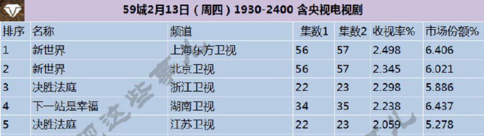 回看今年2月剧集市场,率先掀起收视与话题热度的便是于湖南卫视、芒果TV独播的《下一站是幸福》,该剧在播出期间收视破2的成绩,也成为业内热议现象之一。随后,与其同期在播的《新世界》《决胜法庭》热度上涨,纷纷迎来破2收视,也就造成了2月剧场的“第一波”收视高潮。