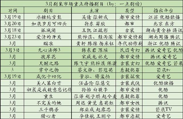不出意外,这个3月,剧集市场又将呈现出一副“热火滔天”的流量模式。