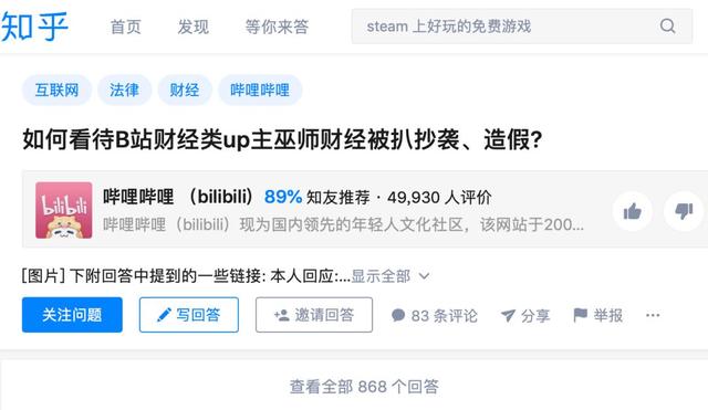 “如何看待B站财经类up主巫师财经被扒抄袭、造假?”截止当前,知乎平台的这一问题已有868个回答,诸多知乎网友在回答或评论中对巫师财经过往涉嫌抄袭的内容进行梳理及分析。