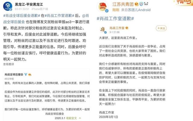 也是在当天,当初的举报发起人“巴南区小兔赞比”微博进行道歉,但其在微博封面里放入了一张带有“我没有错”字样的肖战表情包,结果可想而知。晚上,肖战工作室和肖战粉丝后援会纷纷发表道歉声明,多家微博蓝V也被公关。