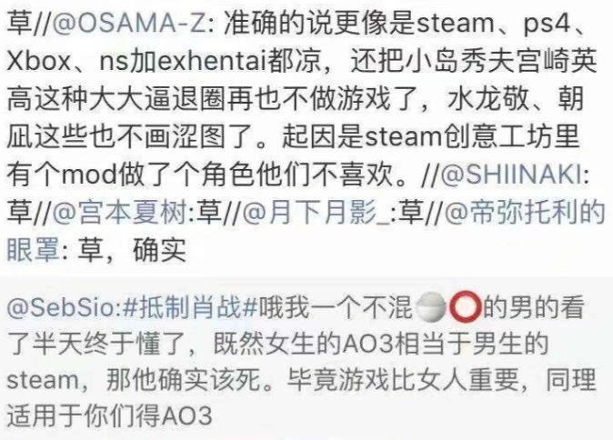 这次闹剧之前,游戏圈的男人们还在努力理清AO3事件的来龙去脉,通过举例steam、小岛秀夫等来了解情况。没想到例子举着举着,自己也必须撸起袖子下场了。