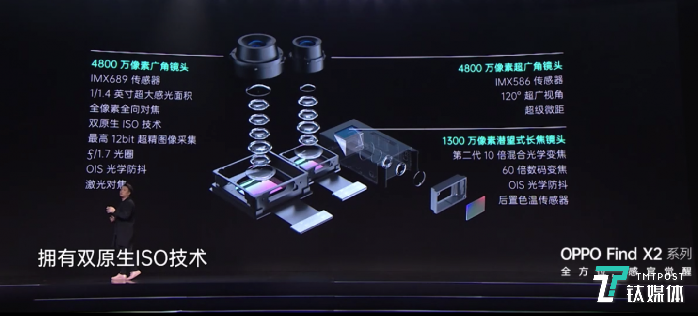 在摄像模组上,IMX689是OPPO与索尼定制的模组1/1.43英寸大尺寸图像传感器, 以便满足夜景和暗光下的画质表现,而这块模组也并没有独占期,只是OPPO优先使用权,未来索尼也有可能将其提供给其他手机厂商。