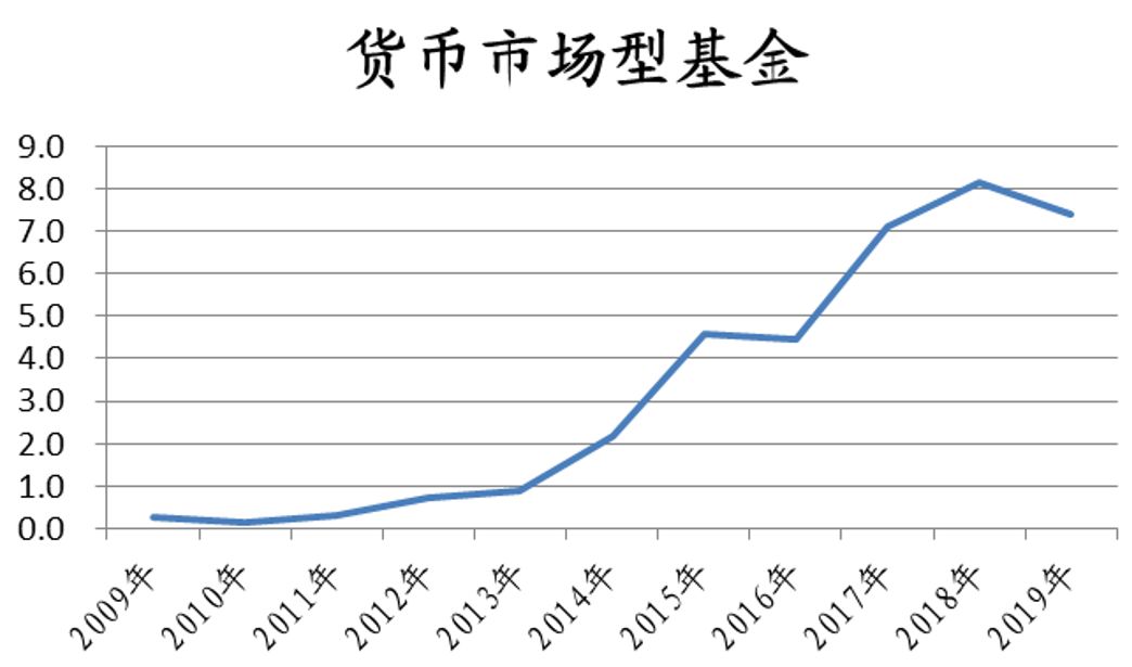 2、货币基金规模自2013年余额宝上线迎来爆发契机,2018由于受到“T+0赎回提现”实施限额管理以及利率下行等多重影响规模回落。