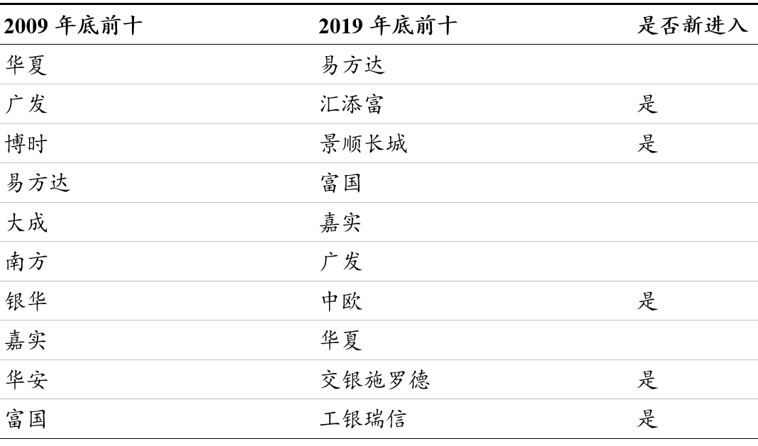 十年前,只有四家公司可以同时登上两个榜单,而如今,这一数字增加到了六家,或许反映出公募基金行业正在进入强者恒强的新阶段。