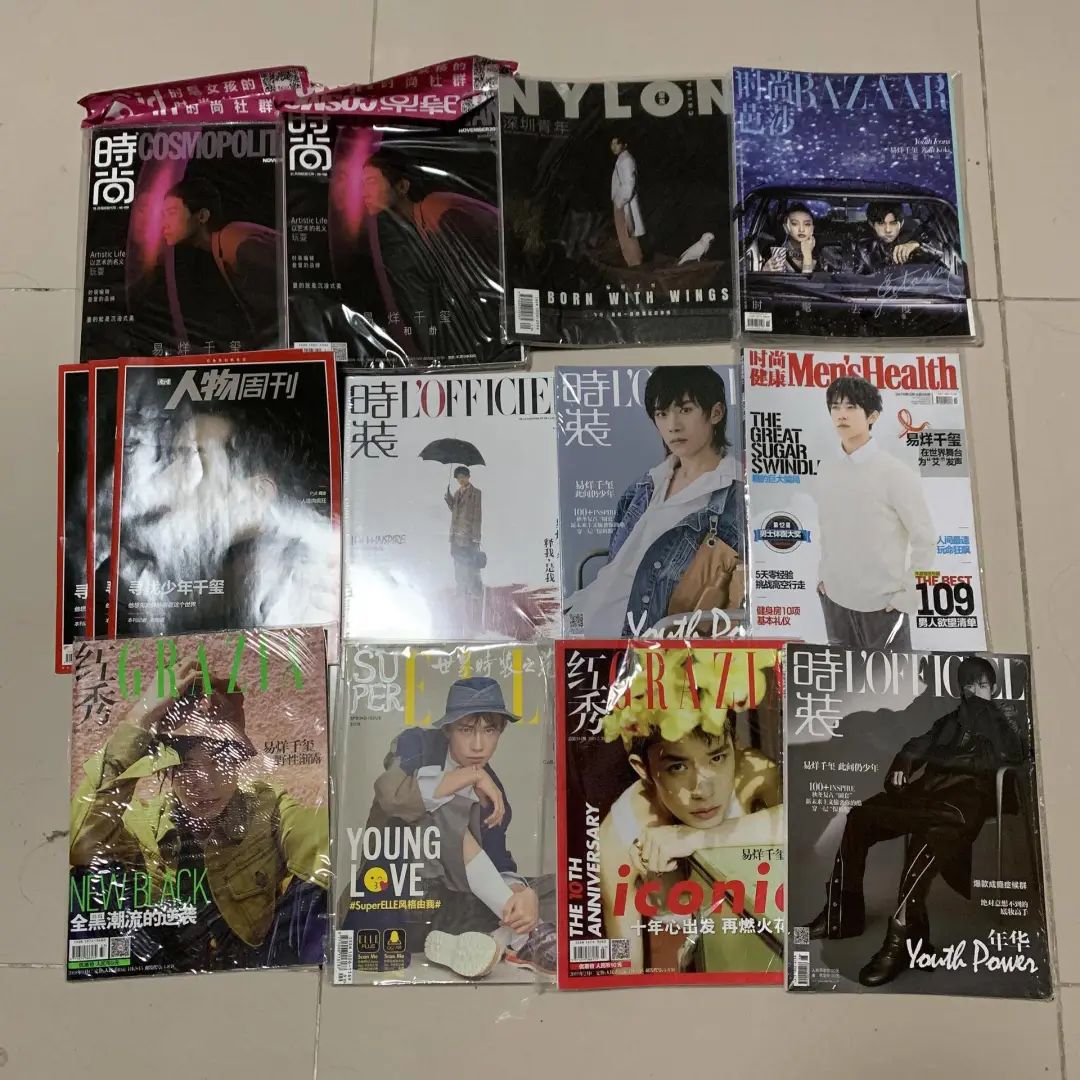 五一收集的部分易烊千玺相关杂志,图 / 受访者提供