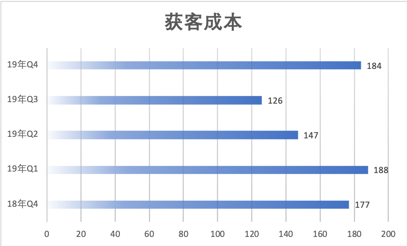 可见,拼多多在2019年依然十分重视用户增长和人均消费的提升,也付出了相应的成本。按照营销费用/新增用户的计算方法,拼多多在四季度的获客成本为184元,相比去年同期的177元有所提升。