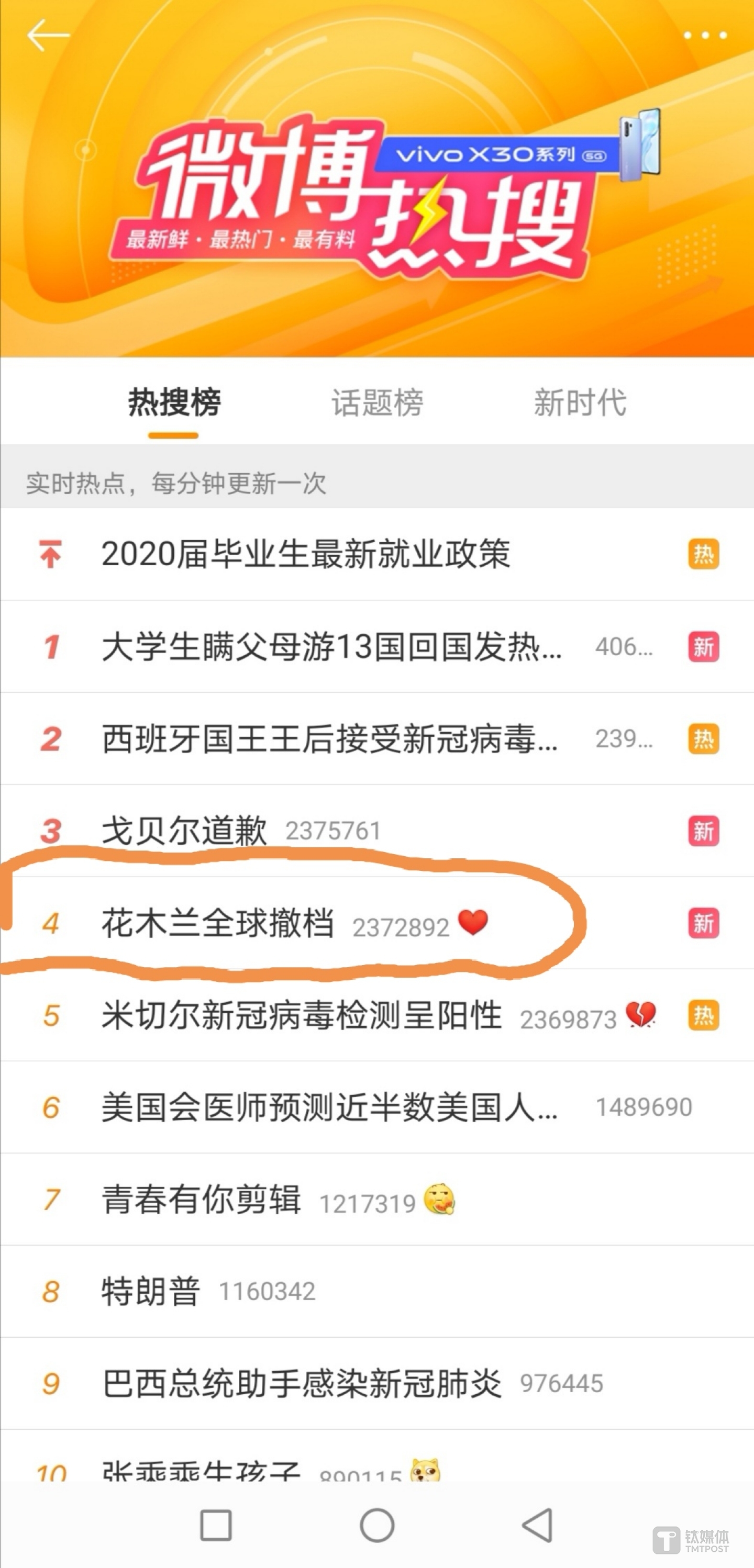 钛媒体快讯 | 3月13日消息,迪士尼宣布真人电影《花木兰》撤档。该片原定从3月26日开始在全球多地上映,包括3月27日在北美、英国公映,如今将择期上映。