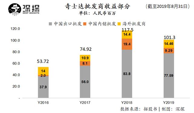 而对于奇士达来说,海外市场一直是奇士达的主要销售目的地,招股书显示,奇士达海外目的地收入在2016-2018年为74%至48%,国内收入占比则相应提高。这实际上是由于海外销售的毛利率一直比国内要高,在过去几年,奇士达的海外零售商及批发商毛利率均保持在35%及以上。