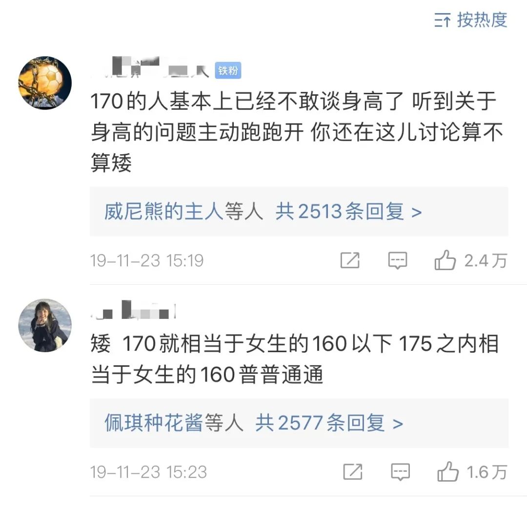 但是互联网的世界从来残酷。网友们总是很明确地告诉这些男性:不要想那么多,170就是矮。