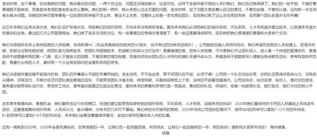 在这封内部信中,杨磊也提出了一些解决方案:2020年保持现有人员规模,冻结新增HC,希望在现有人员规模上挤掉泡沫,另外,要加强干部淘汰机制,带不好团队的干部必须下课。